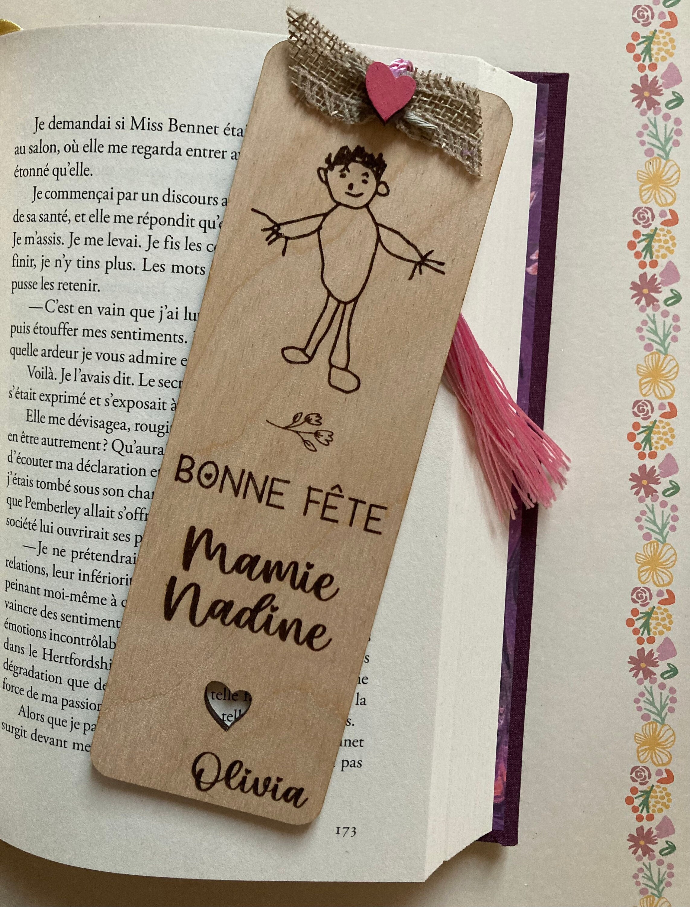 Send me your child's drawing (ideally made on a tablet) for engraving on the bookmark.