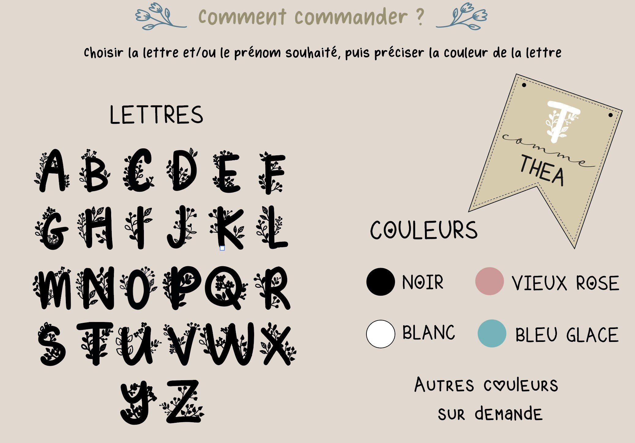 - photo 1: Large Pennant: raised flowery letter + first name