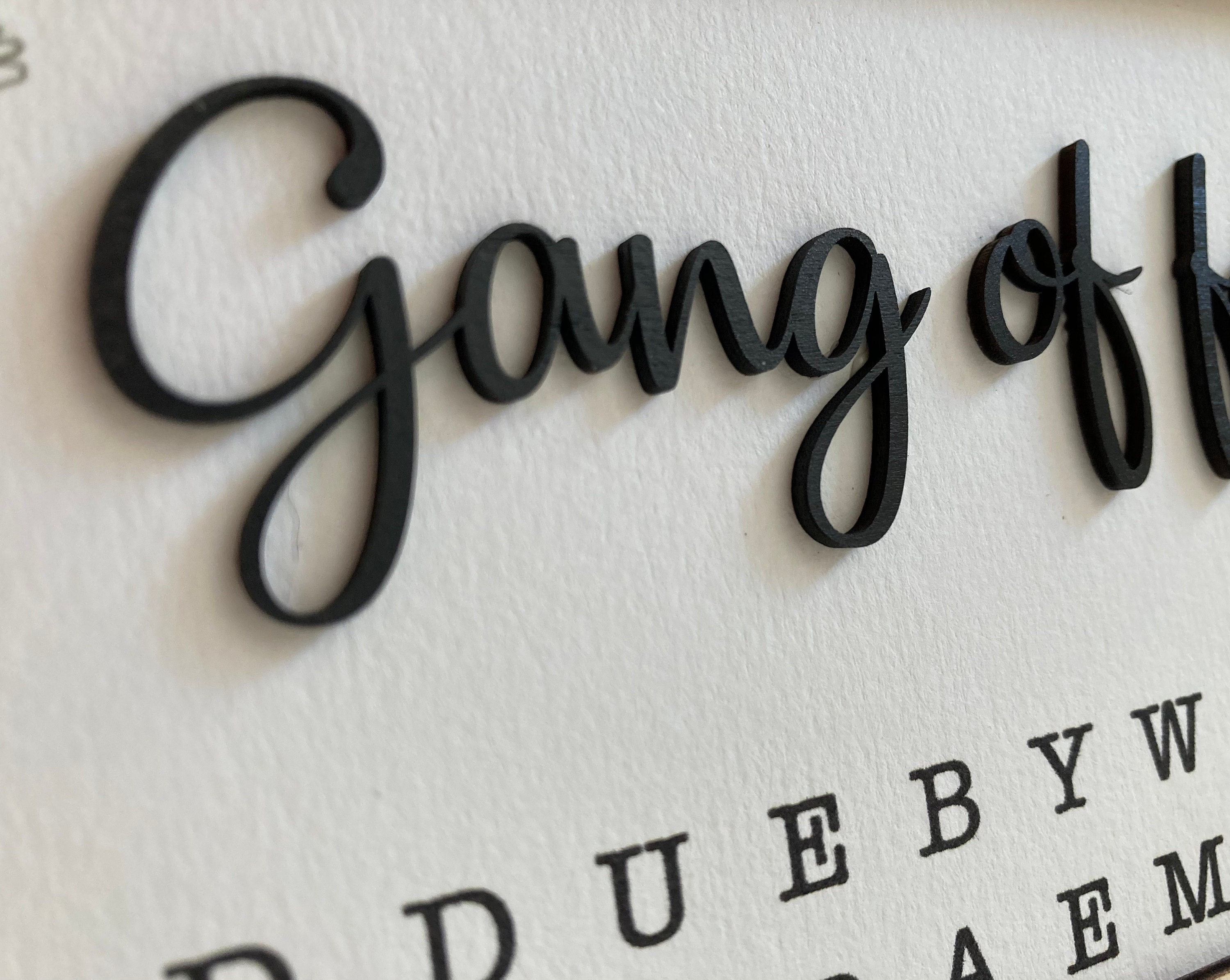 The title of the frame "Gang of four" on the photo is customizable (e.g.: Our family, My loves...) - it is made of wood and painted.