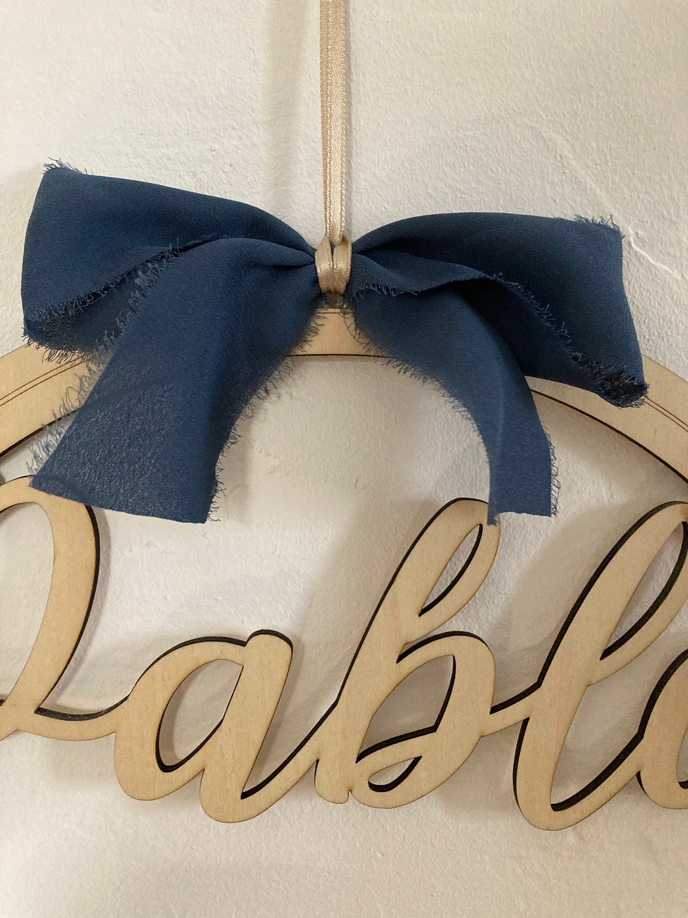 Please specify when ordering: first name, font, color (if embossed model), color of knot and/or ribbon.