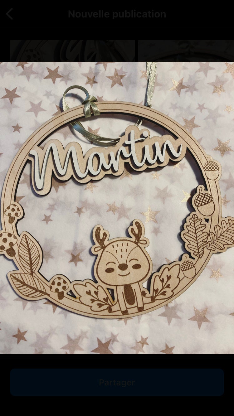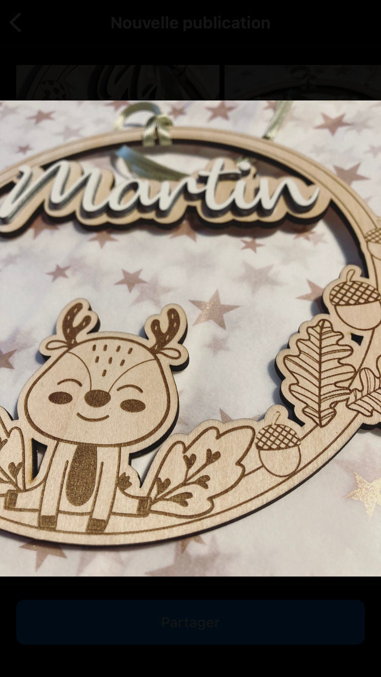 Decorate your baby's room with this wooden crown engraved with the first name of your choice in relief (Martin model) or not (Pablo model). Also possible without a first name.