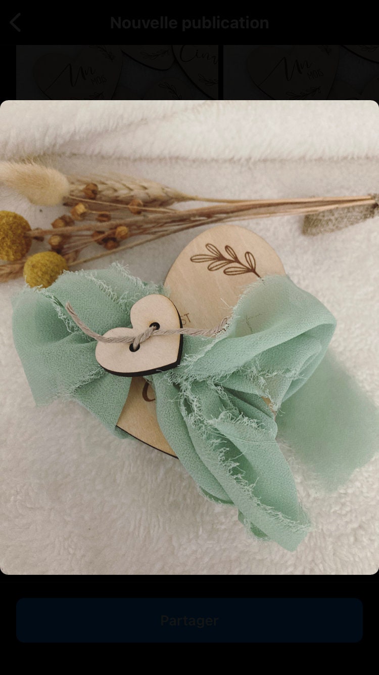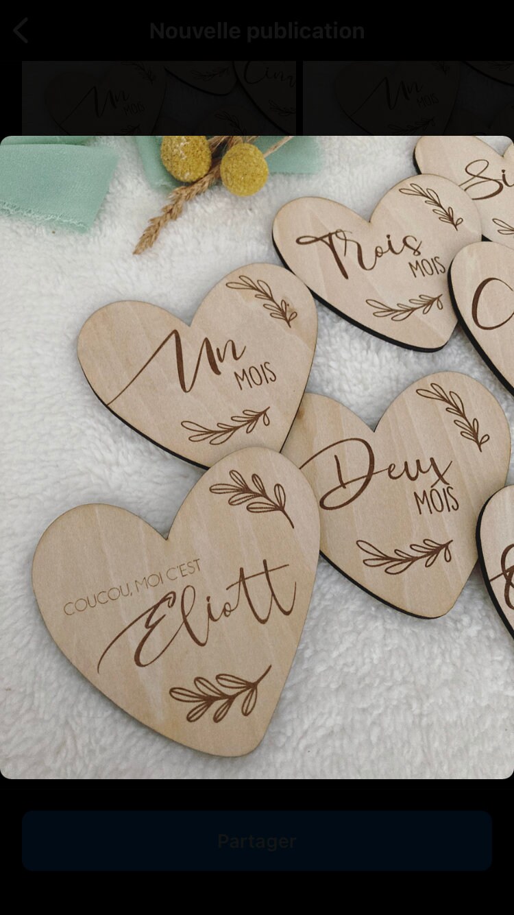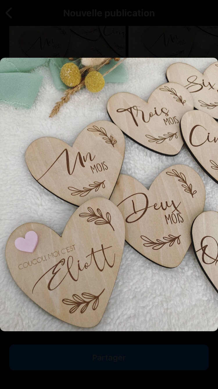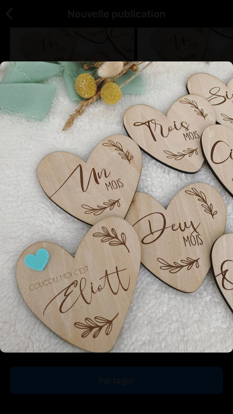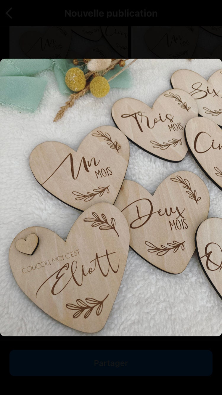 Set of 12 wooden heart-shaped milestone cards (1 card per month) or 15 cards (1 card per month + first 3 weeks).