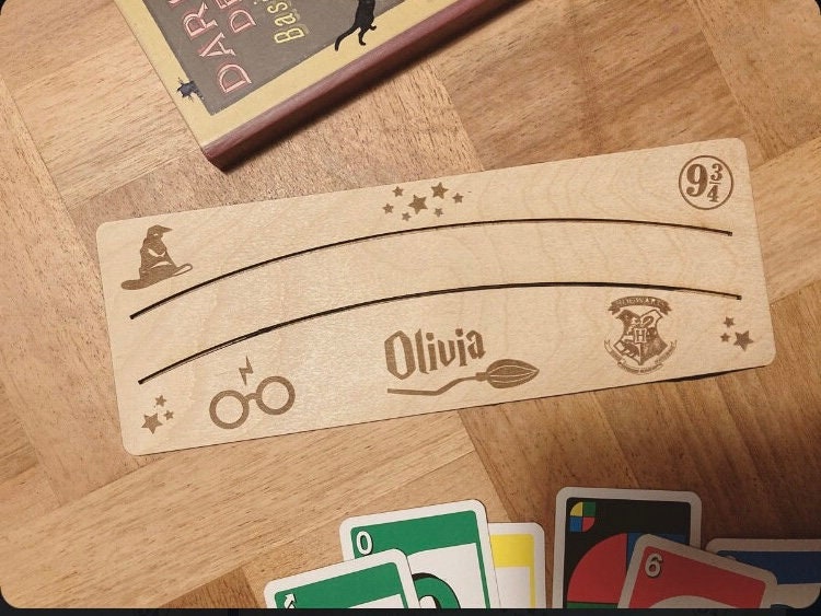 Wooden game card holder with personalized first name - Harry Potter theme - Magic - Wizard