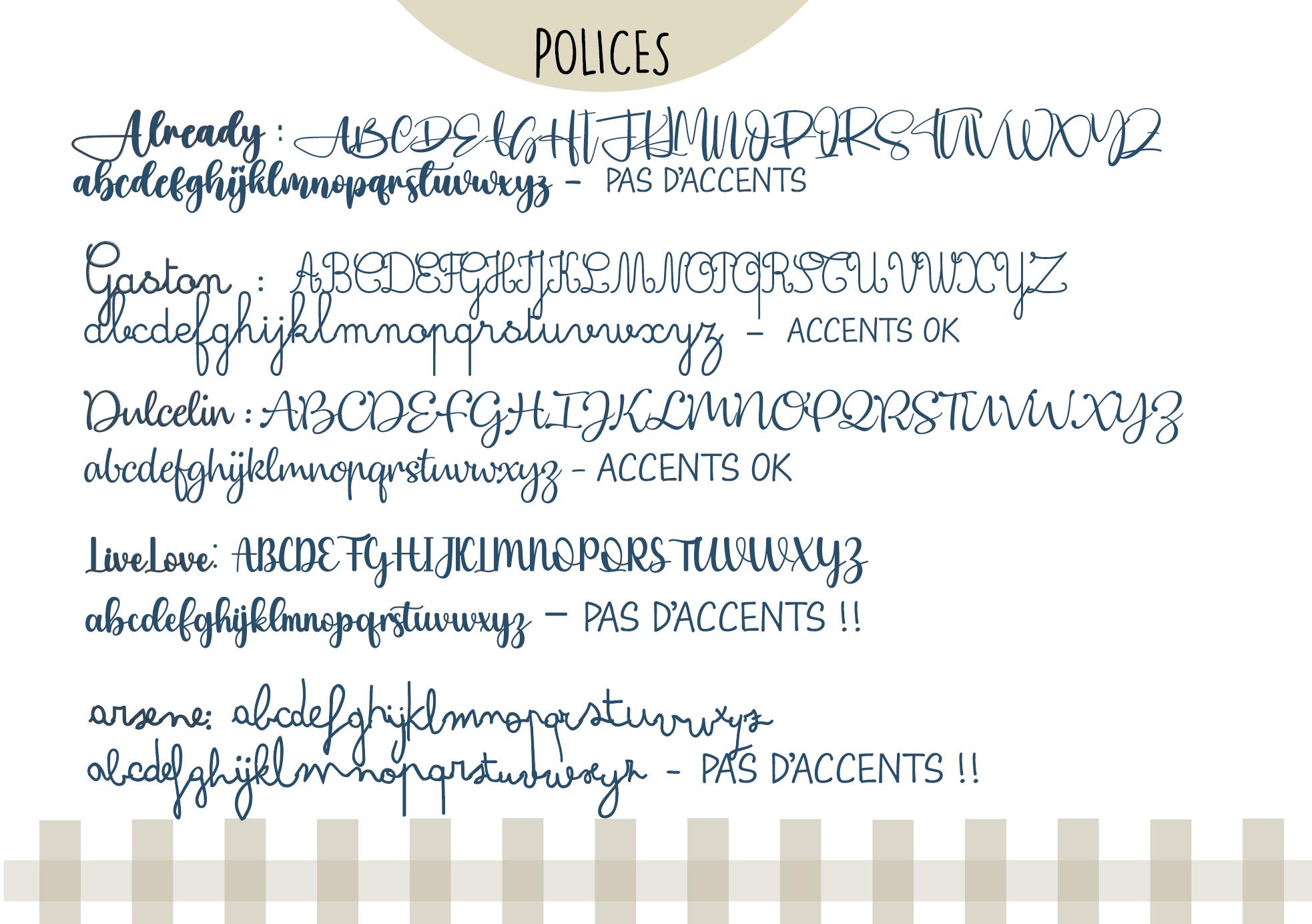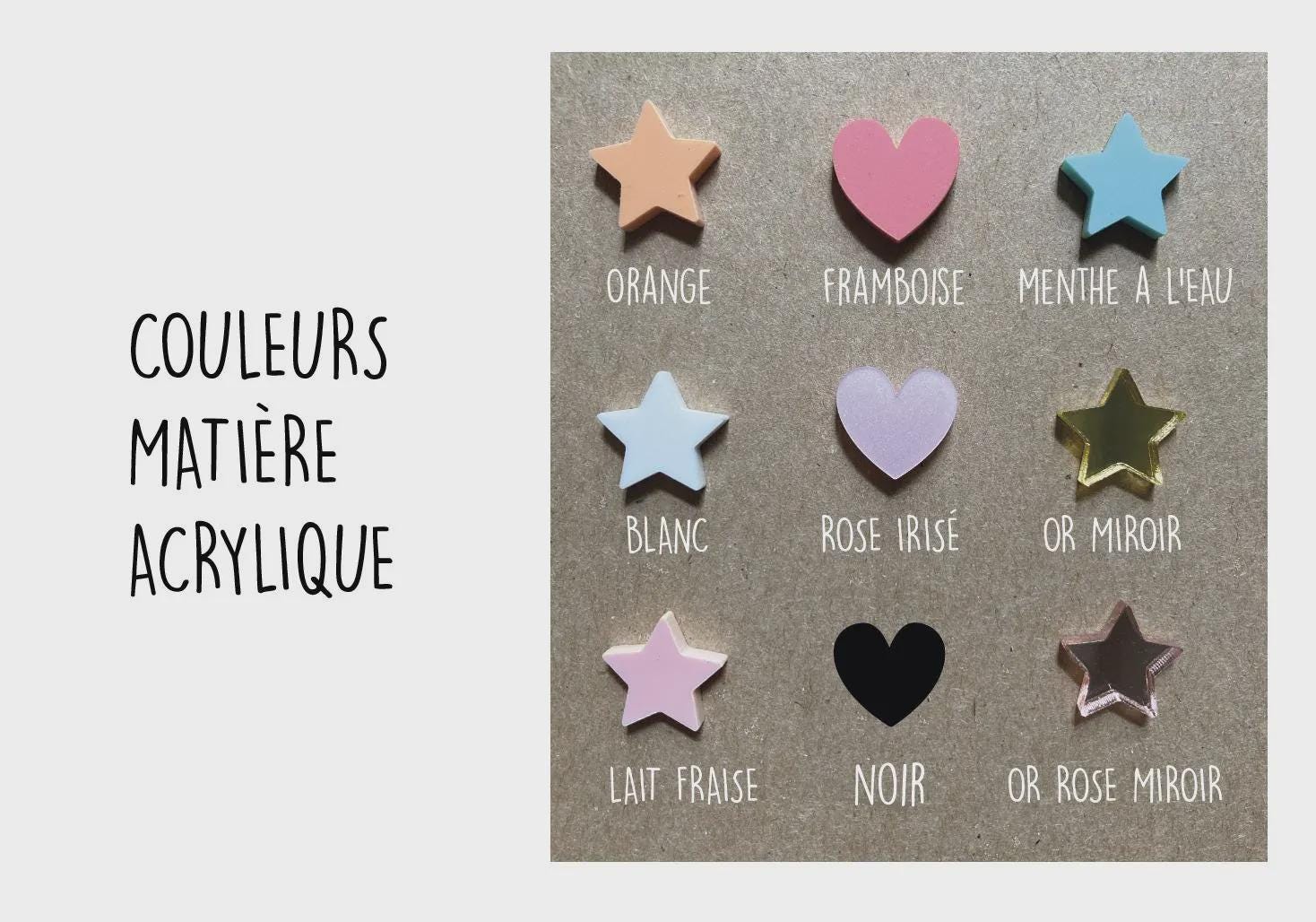 Specify the first name, the color and the desired font. Then specify the color of the ribbon and the boots (see photo of the "acrylic" color chart)