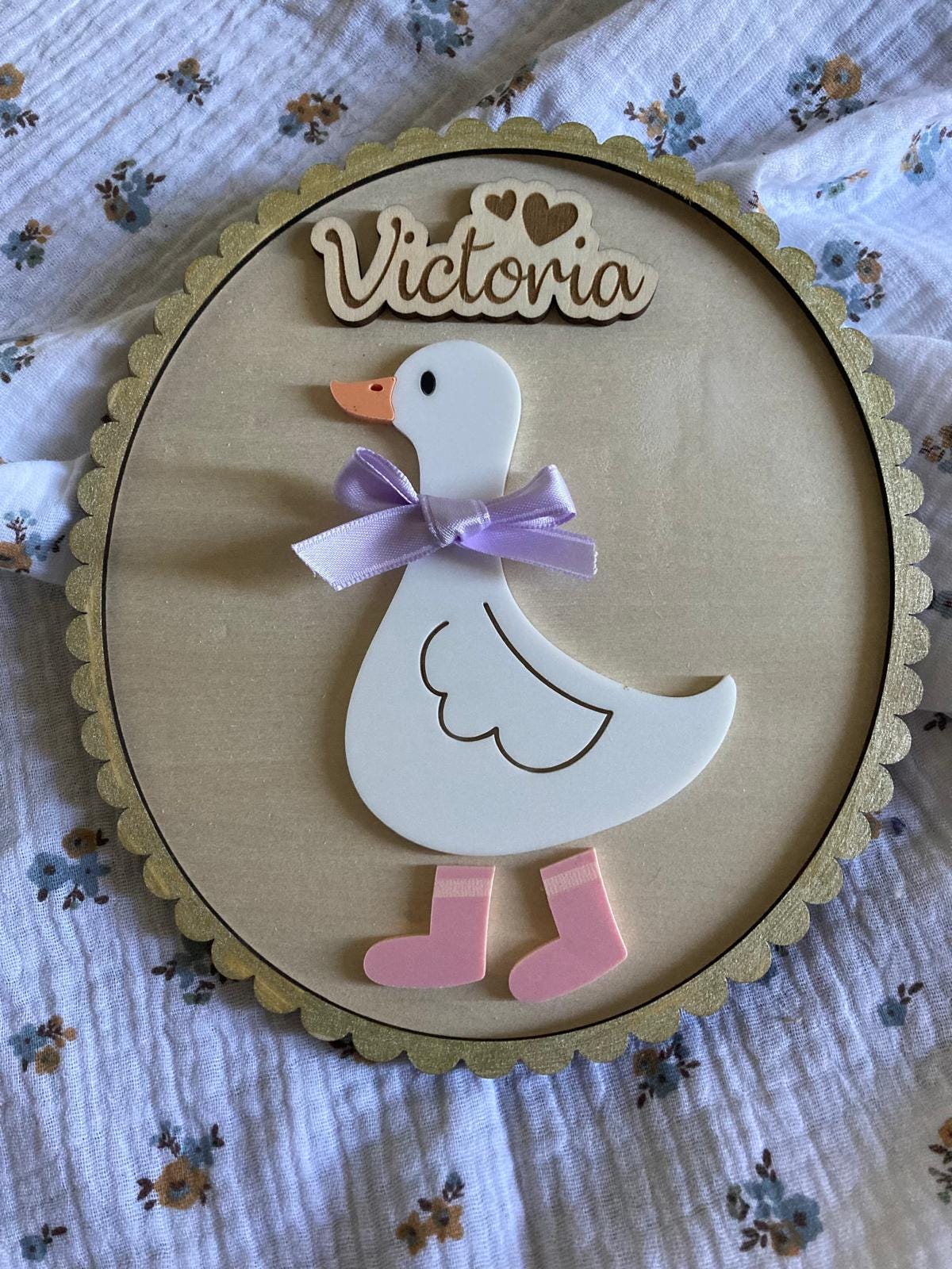 Personalized wooden wall decoration - little goose - duck - silly goose - Baby room decoration, child.