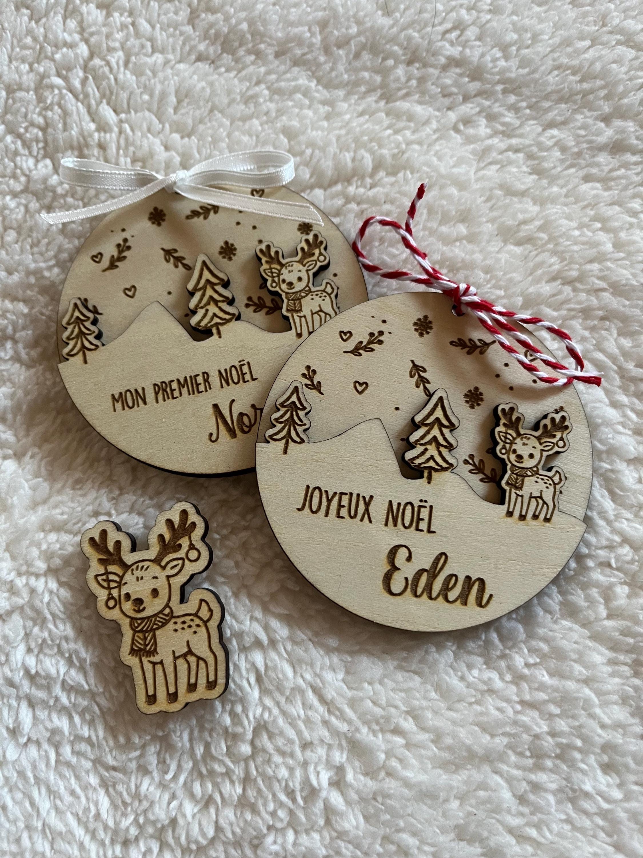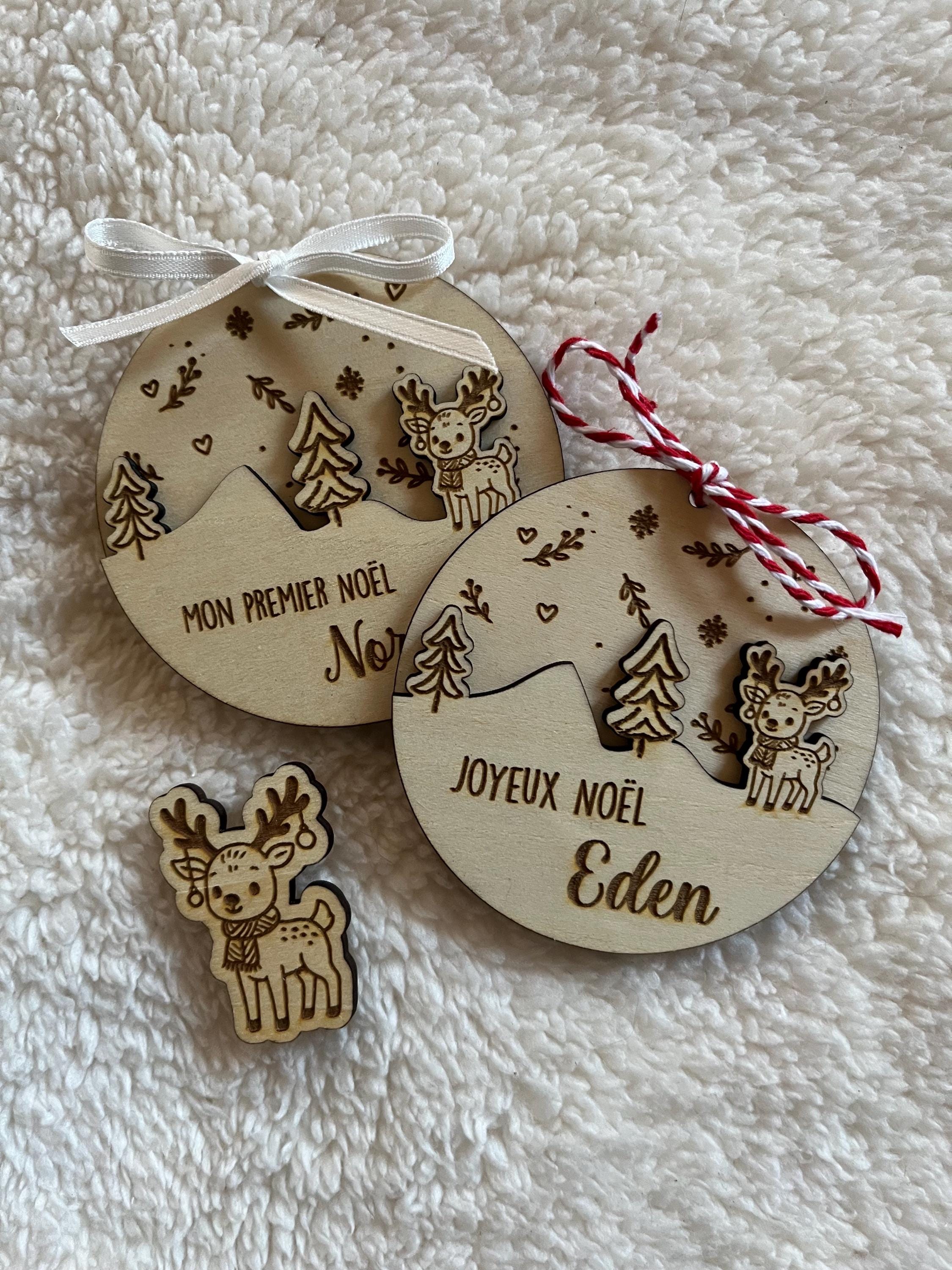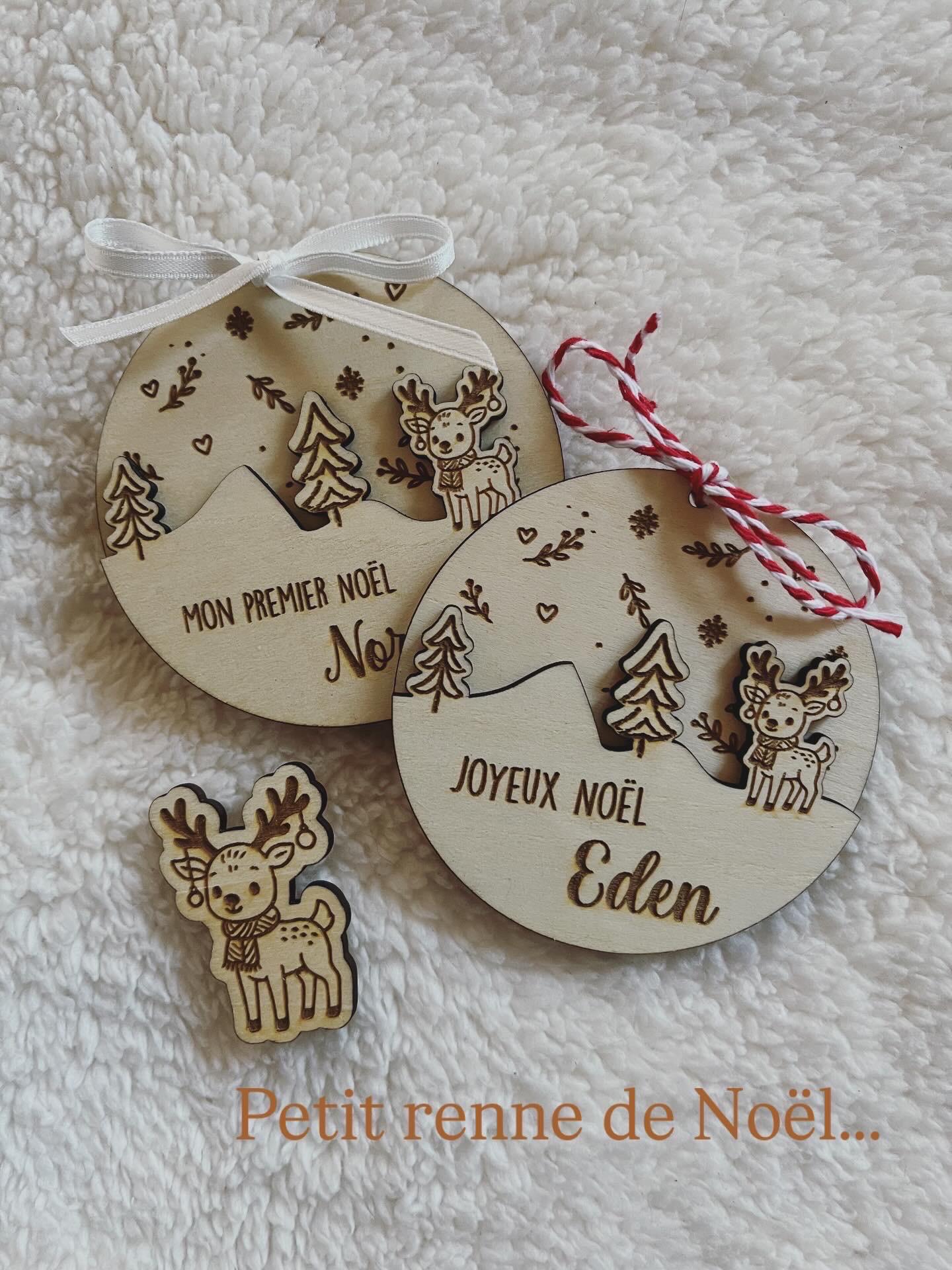 Personalized poplar wood Christmas bauble - Size 8 cm - small Christmas reindeer